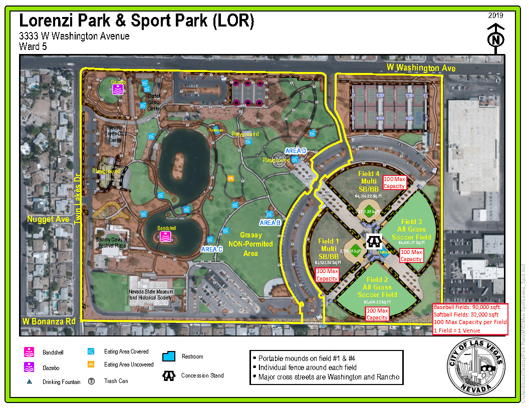 Lorenzi Park opened in 1926 with a pool, dance pavilion, lakes and orchards. Today, we see four courts added to it’s list of amenities offered by the city of Las Vegas. The project cost $800,000.00 and was built by JNJ Engineering Construction.